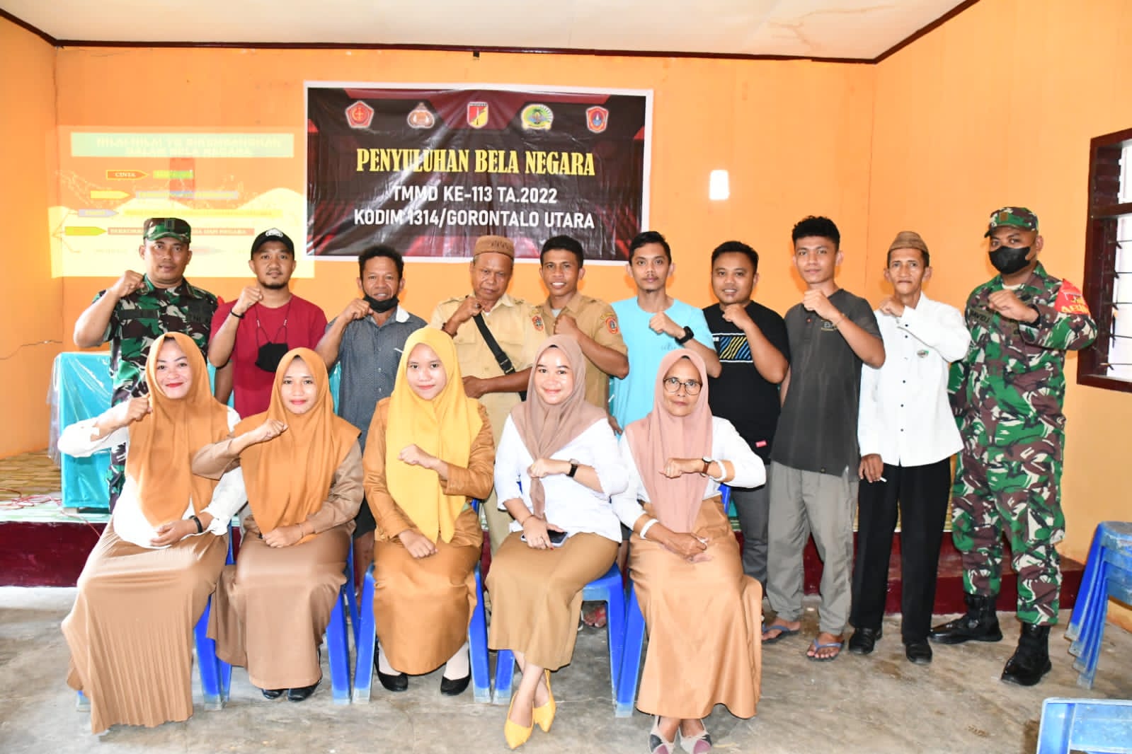 Wawasan Kebangsaan dan Bela Negara TMMD Ke-113 TA. 2022 Kodim 1314/Gorontalo Utara “TMMD Dedikasi Terbaik Membangun NKRI” Bertempat Di Aula Kantor Desa Malingkapoto Ds.Molingkapoto,Kec.Kwandang Kabupaten Gorontalo Utara, Provinsi Gorontalo. Rabu (17/05/2022).